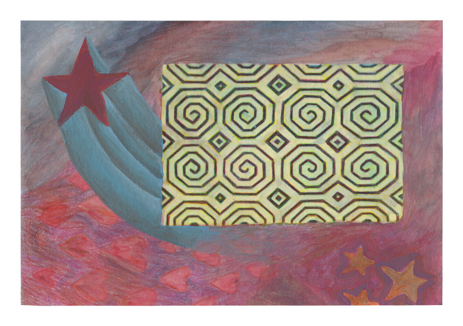 Acrylic, color pencil and watercolor on paper